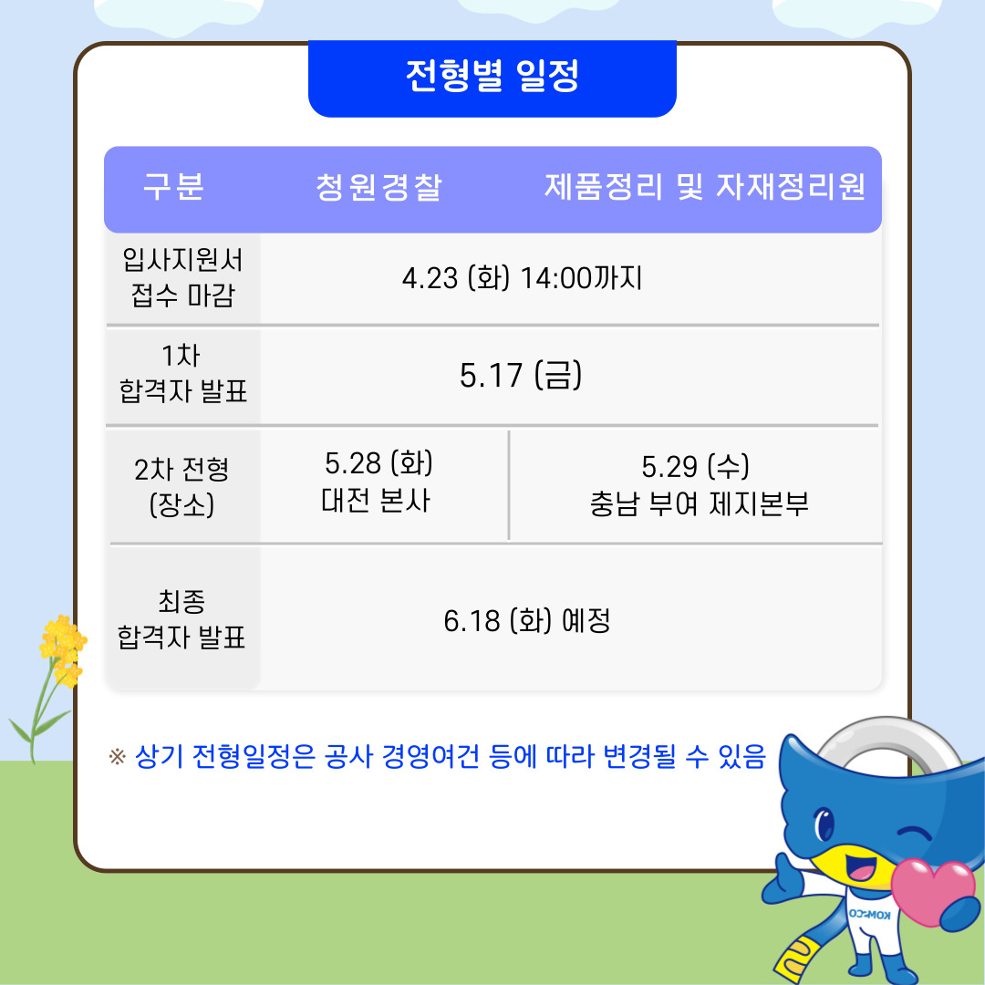 자세한 내용은 '한국조폐공사 홈페이지(http://www.komsco.com) > 뉴스룸 > 채용소식'에서 확인해주세요.