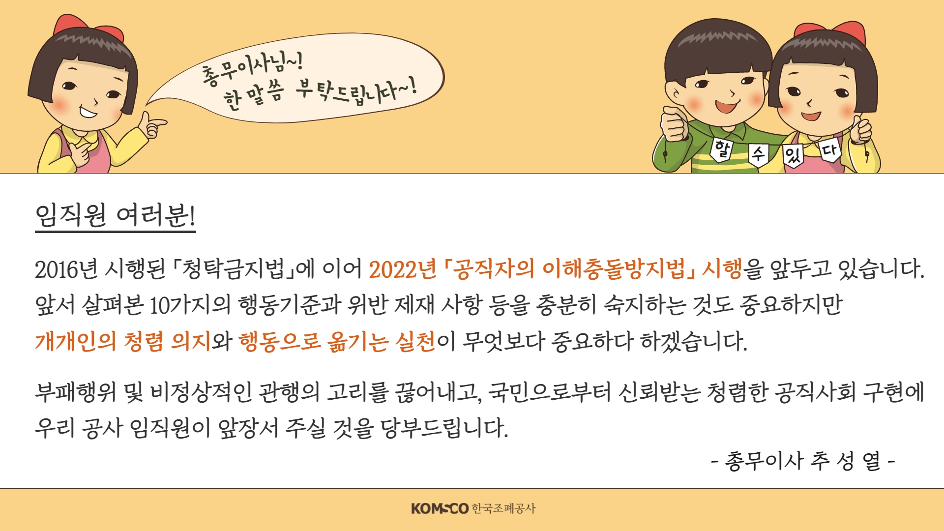 2021년 8월 시작된 한국조폐공사의 '고위직 릴레이 청렴캠페인'!