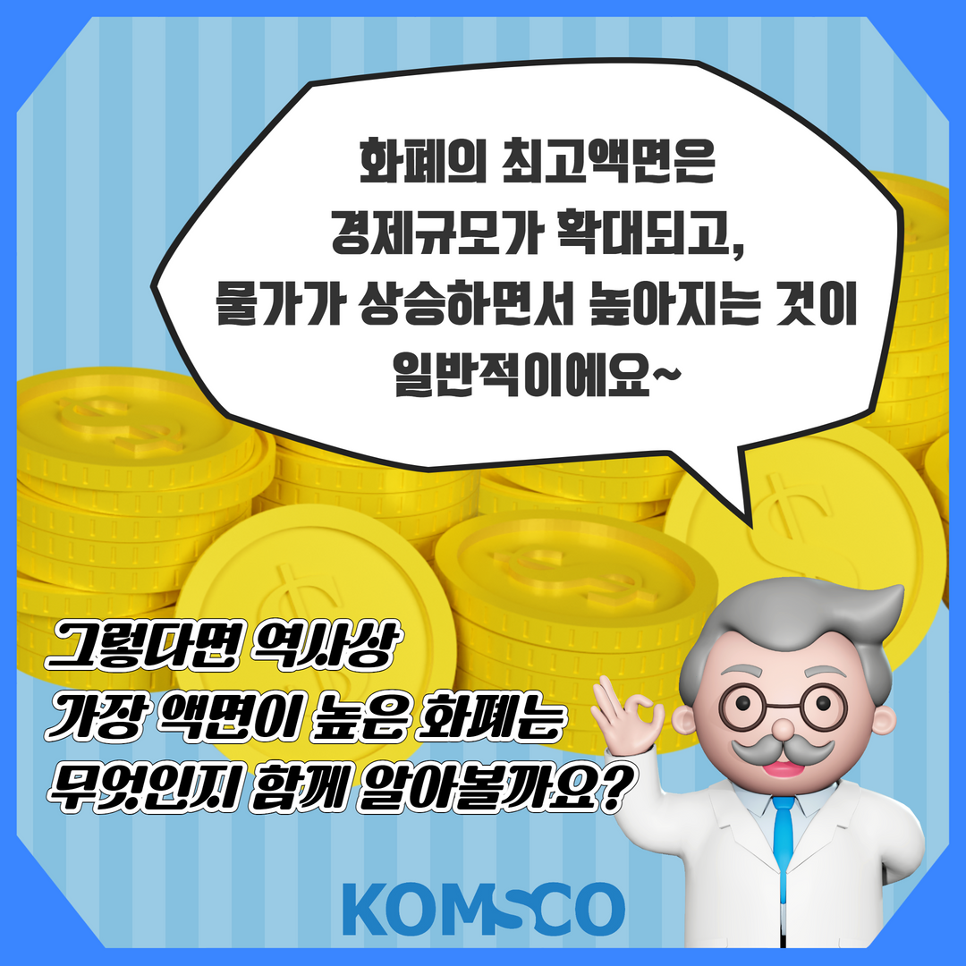 화폐의 최고액면은 경제 규모가 확대되고, 물가가 상승하면서 높아지는 것이 일반적인데요!