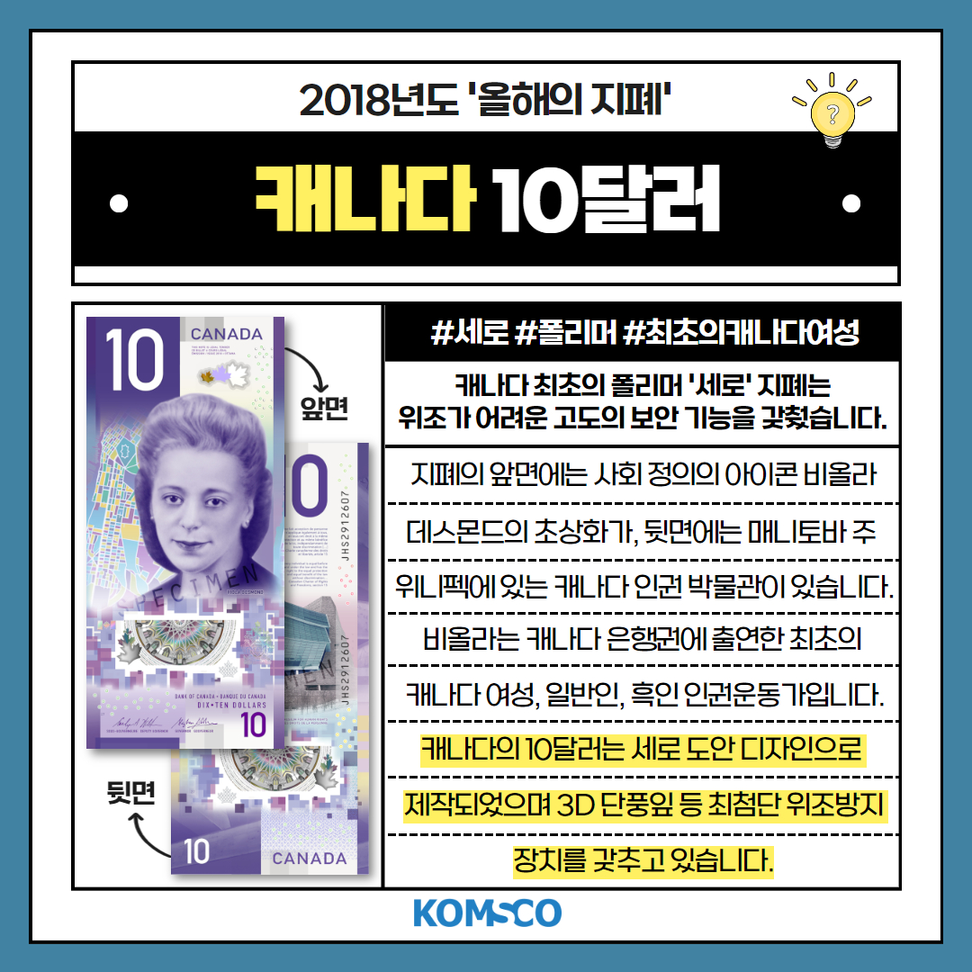 캐나다 최초의 폴리머 '세로' 지폐는