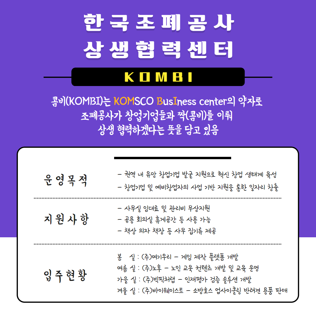 콤비(KOMBI)는 KOMSCO BusIness center의 약자로