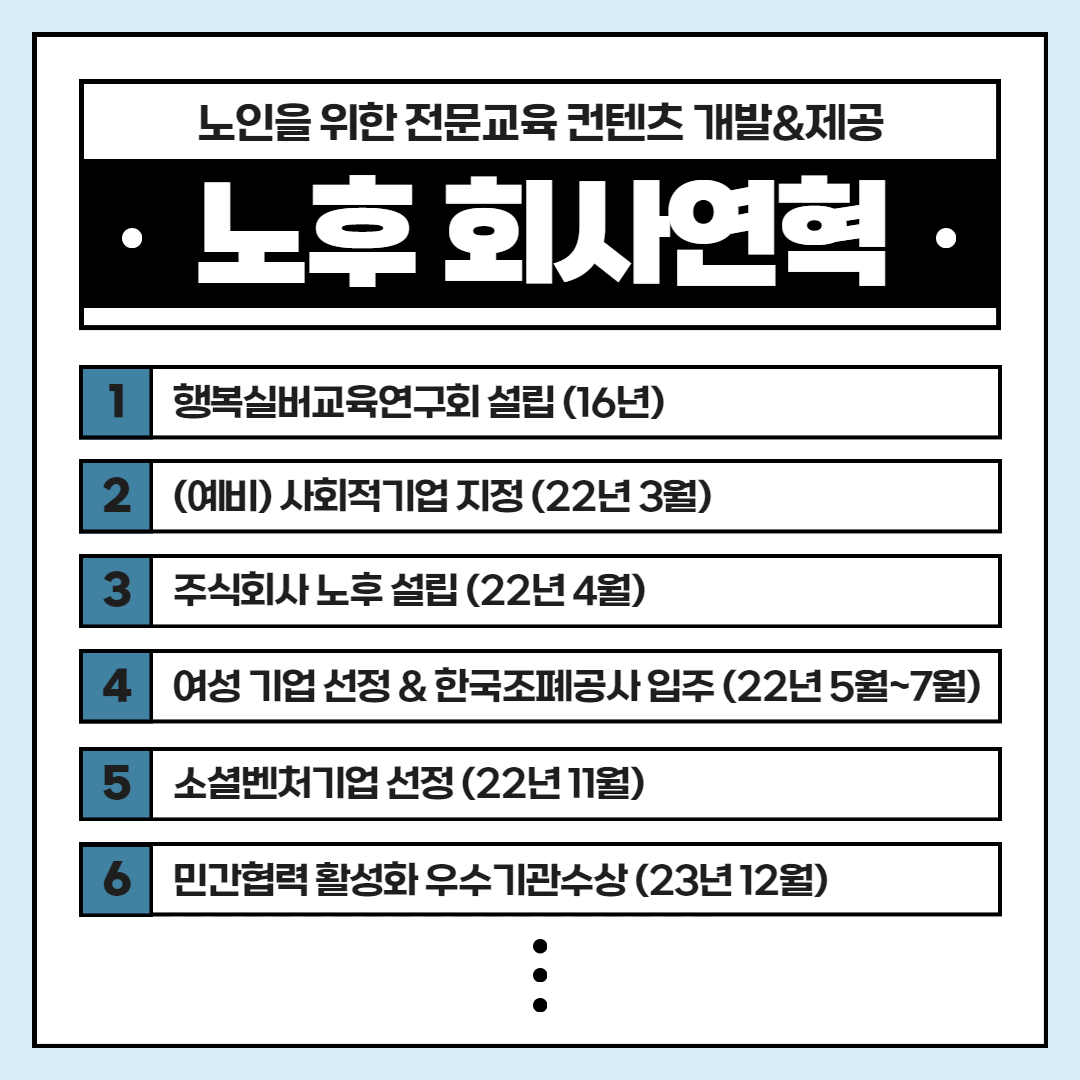 - 여름 실 : (주)노후 - 노인 교육 콘텐츠 개발 및 교육 운영