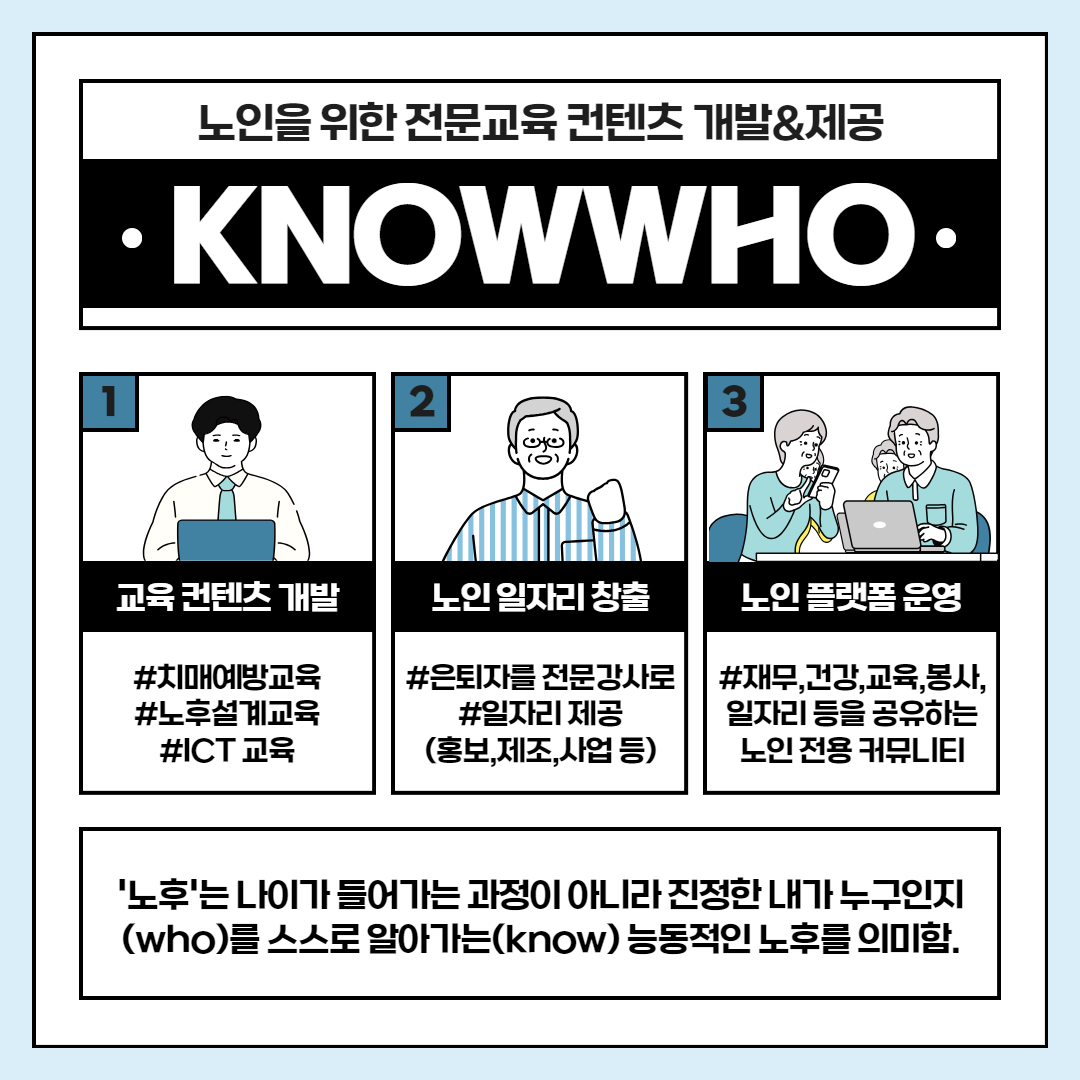 진정한 내가 누구인지(who)를 스스로 알아가는(know) 능동적인 노후를 의미함.