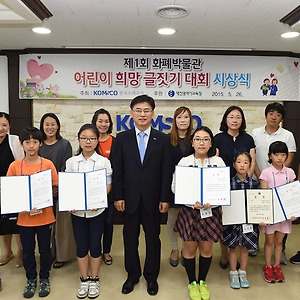 화폐박물관149 화폐박물관과 함께하는 신나는 여름방학 화폐박물관과 함께하는 신나는 여름방학 - ‘화폐 속 문화유산 거북선 만들기’, ‘청소년 드림 콘서트’ 등 다양한 행사 진행 (7월 28일 ~ 8월 30일) 한국조폐공사 화폐박물관에서는 2015년 7월 28일(화)부터 8월 30일(일)까지 여름방학을 맞이한 학생들과 가족단위 관람객들이 우리 화폐문화를 재미있게 즐기며 체험할 수 있도록 ‘화폐 속 문화유산 만들기’, ‘재미있는 화폐 이야기’, ‘체험학습지’, ‘특별한 여행, 돈의 발원지를 찾아서’, ‘청소년 Dream Concert’ 등 다양한 행사를 마련하여 서비스할 예정입니다. ‘화폐 속 문화유산 만들기’는 지폐에 등장했던 거북선을 클레이 점토로 입체감 있게 만들어 보는 체험으로, 우리의 문화유산을 직접 만들어 보면서 우리나라의 역사와 문화를 공부할 수 .. 2015. 7. 19. KOMSCO 2015여름 산・들・바・람 캠페인 KOMSCO 2015여름 산・들・바・람 캠페인 - 직원 1인당 5일 이상 집중 휴가 사용으로 일‧가정 양립 지원 - 메르스로 인한 내수부진 극복에 공공기관으로서 솔선수범으로 참여 한국조폐공사는 예기치 못한 메르스 사태로 인한 내수부진 극복에 공공기관으로서 솔선수범하기 위하여 “KOMSCO 2015여름 산(山)・들(野)・바(海)・람(覽) 캠페인”을 실시하기로 하였습니다. “KOMSCO 2015여름 산(山)・들(野)・바(海)・람(覽) 캠페인” 이란 올 여름 직원 1인당 5일 이상 집중휴가를 사용해서 국내 산, 들, 바다 관광지를 여행하도록 함으로써 침체된 국내경기 활성화에 기여하는 한편 건전한 여가선용을 통한 일・가정 양립지원 및 업무효율 향상을 꾀하는 운동인데요~ 우리공사는 캠페인 활성화를 위해 임직원을 .. 2015. 7. 16. 평범한 조폐공사 분수대에 담긴 특별한 의미 오늘 오후 4시 반경, 한국조폐공사 본사에서 분수대 가동식이 있었습니다. 평범한 분수대아니냐고요? 물론 겉보기에는 평범하지만 조폐공사의 분수대 가동식에 담긴 특별한 의미가 있답니다~ 첫째! 내수경기 활성화를 위해 진행되는 'KOMSCO 2015여름 산(山)・들(野)・바(海)・람(覽) 캠페인'의 적극적인 동참을 이끌어내기 위해! ※ KOMSCO 2015여름 산(山)・들(野)・바(海)・람(覽) 캠페인 : 올 여름 직원 1인당 5일 이상 집중휴가를 사용해서 국내 산, 들, 바다 관광지를 여행하도록 함으로써 침체된 국내경기 활성화에 기여하는 한편 건전한 여가선용을 통한 일・가정 양립지원 및 업무효율 향상을 꾀하는 운동 둘! 2014년에 이어 올해에도 '국민의 눈높이'에서 체질 개선에 앞장서는 조폐공사가 되기 위.. 2015. 7. 16. 1998년도 500원화?! 얼마 전 보도되었던 1998년도 500원화의 귀한 몸값(?) 기억하시나요? 이외에도 1981년의 100원, 그리고 1966년의 10원, 1987년의 500원짜리 주화들도 가치가 남다른데요~ 하지만 귀한 동전의 최고봉은 역시 1998년도 500원화입니다. 남은 7월 한 달도 행운이 함께하시길 바라면서 화폐박물관에 전시되어 있는 1998년 500원화 사진을 업로드 해드립니다^^ * 화폐박물관은 한국조폐공사가 비영리 문화사업의 일환으로 국민에게 무료로 개방하고 있습니다. 4개의 상설전시실을 갖추고 있으며 소장하고 있는 화폐자료 중 4,000여 점이 시대별, 종류별로 전시되어 있어 우리나라 화폐 천 년의 역사를 한 눈에 볼 수 있습니다. 관련 기사 조선비즈, 2015.07.06, '이 동전...80만원이라고?'.. 2015. 7. 10. 화폐박물관 특별전시회 개최 덕산 김윤식『刻字展』 한국조폐공사 화폐박물관 특별전시실에서 7월 1일 수요일부터 7월 19일 일요일까지 '각자전'이 개최됩니다.가족분들과 함께 오셔서 즐겁고 소중한 추억 만들어보세요^^ 전시회명 : 덕산 김윤식『刻字展』 개최목적 ○ 박물관을 관람객들에게 다양한 예술분야의 문화체험기회 제공 ○ 지역사회 문화발전을 위한 작가들의 작품발표 공간 지원 ○ 국민행복을 위해 함께 노력하는 공사의 사회공헌 실천 이미지 제고 기간 및 장소 : 2015. 7. 1.(수) ~ 7. 19.(일) / 19일간 (화폐박물관 특별전시실) 전시내용 : 전각과 서예가 어우러진 작품 30여점 ○ 석인재(石印材)와 도자기 흙을 이용한 전각 작품 등 전시작가 : 덕산 김윤식 ○ 약력 - 도솔미술대전 운영위원 및 심사위원.. 2015. 7. 3. 제1회 화폐박물관 어린이 희망 글짓기 대회 시상식 5월 26일 화요일 한국조폐공사 본사 대회의실에서 제1회 어린이 희망 글짓기 대회 시상식이 진행되었습니다.대전 봉명초등학교 5학년 민윤서 어린이가 최우수상으로 선정돼 한국조폐공사 사장상을 수상하고 있는 모습입니다^^ 대전 전민초등학교 1학년 이선행 어린이가 우수상으로 선정돼 대전광역시 교육감상을 수상하고 있는 모습입니다^^ 장려상을 수상한 친구들의 모습도 보입니다^^ 마지막으로 단체사진을 촬영 후 제1회 화폐박물관 어린이 희망 글짓기 대회 시상식을 마쳤습니다.다시 한번 수상한 어린이들에게 축하의 말을 전하며, 다음 제 2회 글짓기 대회에는 더욱 더 많은 어린이들이 참가하여 돈에 대한 다양한 이야기를 전달해주기를 기대해보겠습니다^^ ※ 수상자 명단 2015. 5. 27. 이전 1 ··· 18 19 20 21 22 23 24 25 다음